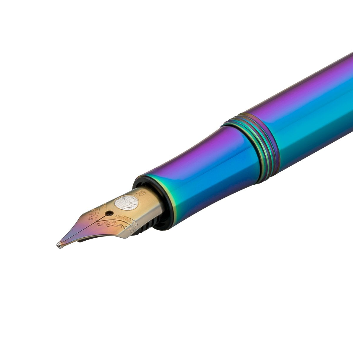 The exotic fountain pen is completed by a colourful nib that is temperature-treated with a laser to achieve its rainbow shimmer. You can choose between five nib sizes, ranging from extra fine (EF) to extra broad (BB). If you’re not sure which size you want or need, we recommend the nib size M.