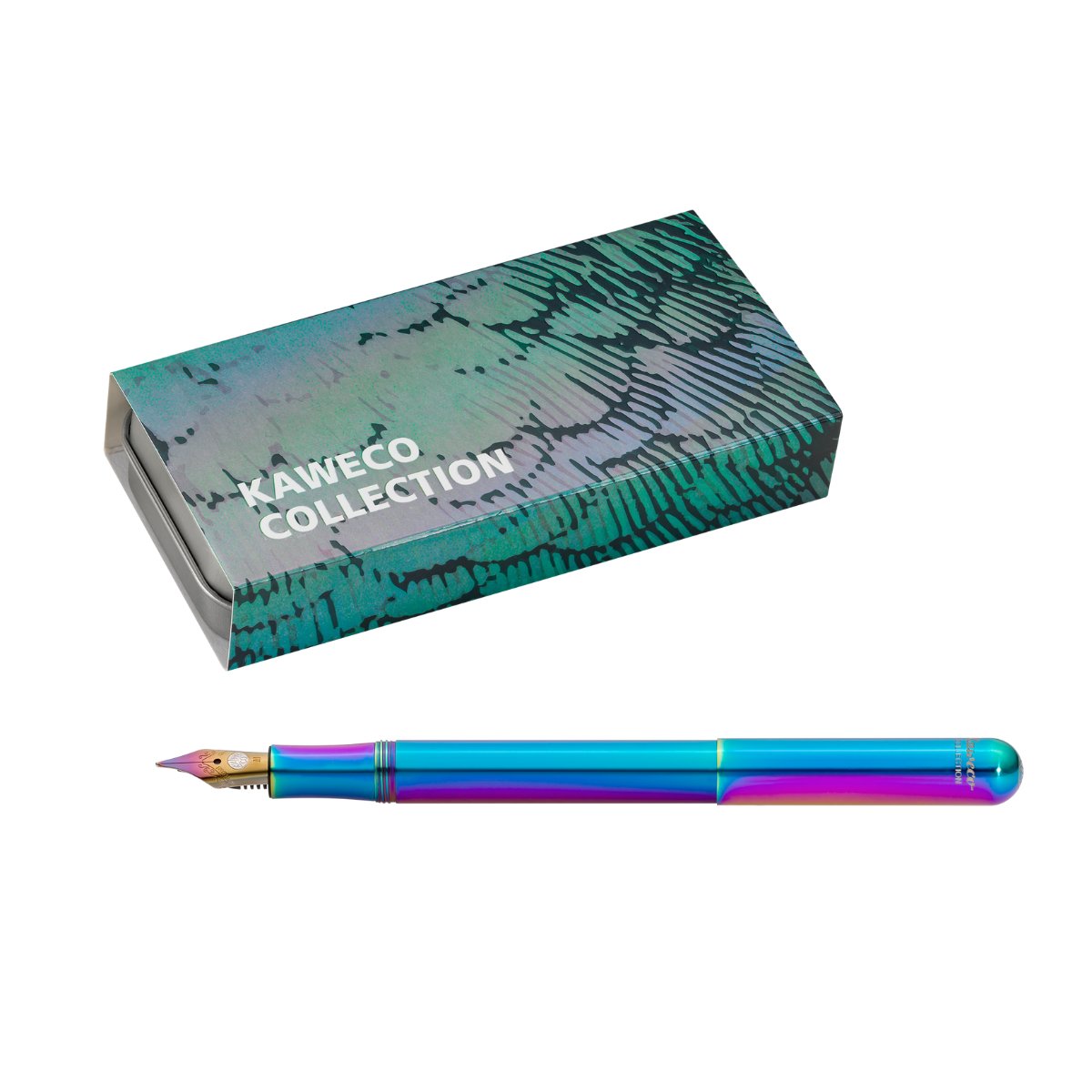 Just like its namesake, the hummingbird, our new Liliput Kolibri glides smoothly onto the paper. It's one of our smallest writing instruments. Concerning its colour, the stainless-steel body is equally as striking as the mesmerizingly shining plumage of different hummingbird species. They get their colourful appearance due to the surface structure of their feathers, known as the phenomenon of interference, where light is reflected. Reminiscent of this play of colour, our Kaweco Collection Liliput Kolibri gets its metallic shine thanks to the PVD-plating, a process resulting in various unique colour combinations, making each pen one of a kind.
