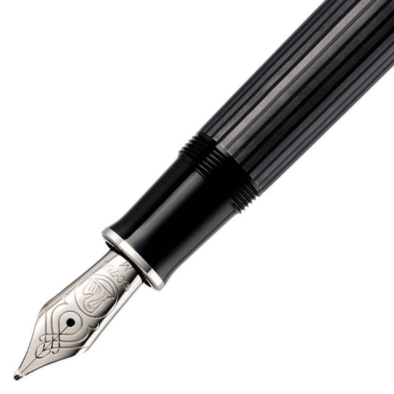 Fountain pen with piston filling mechanism ; 18-carat completely rhodium plated gold nib ; Palladium-plated highlights ; Individual striped cellulose acetate material ; Diamond cut, high-grade resin casing ; Made in Germany