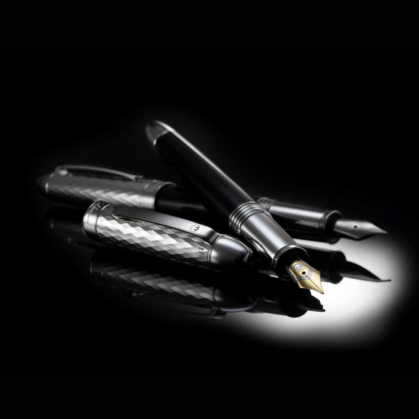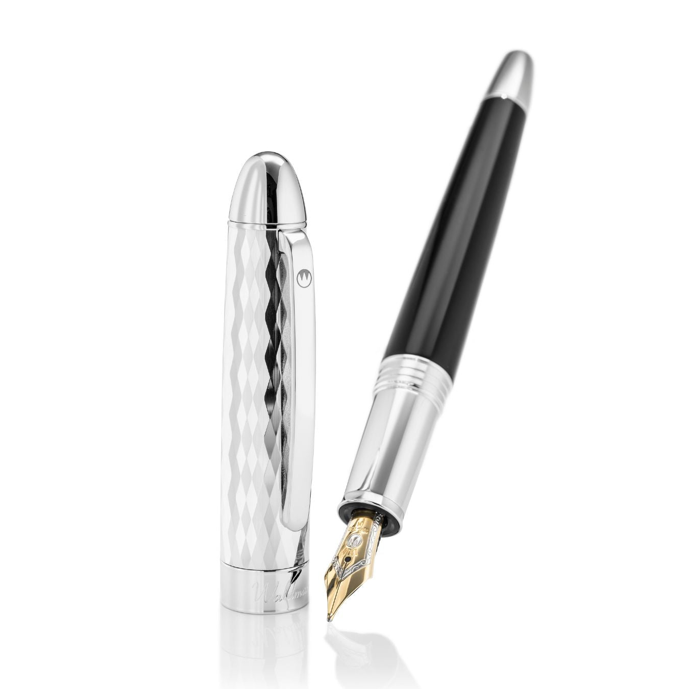 The Waldmann Précieux Black Diamond Fountain Pen truly lives up to its name, impressing with its refined feel and exclusive finish. The cap features a delicate diamond-cut wave pattern that catches the light beautifully.