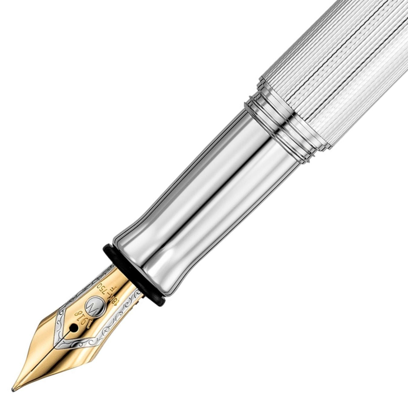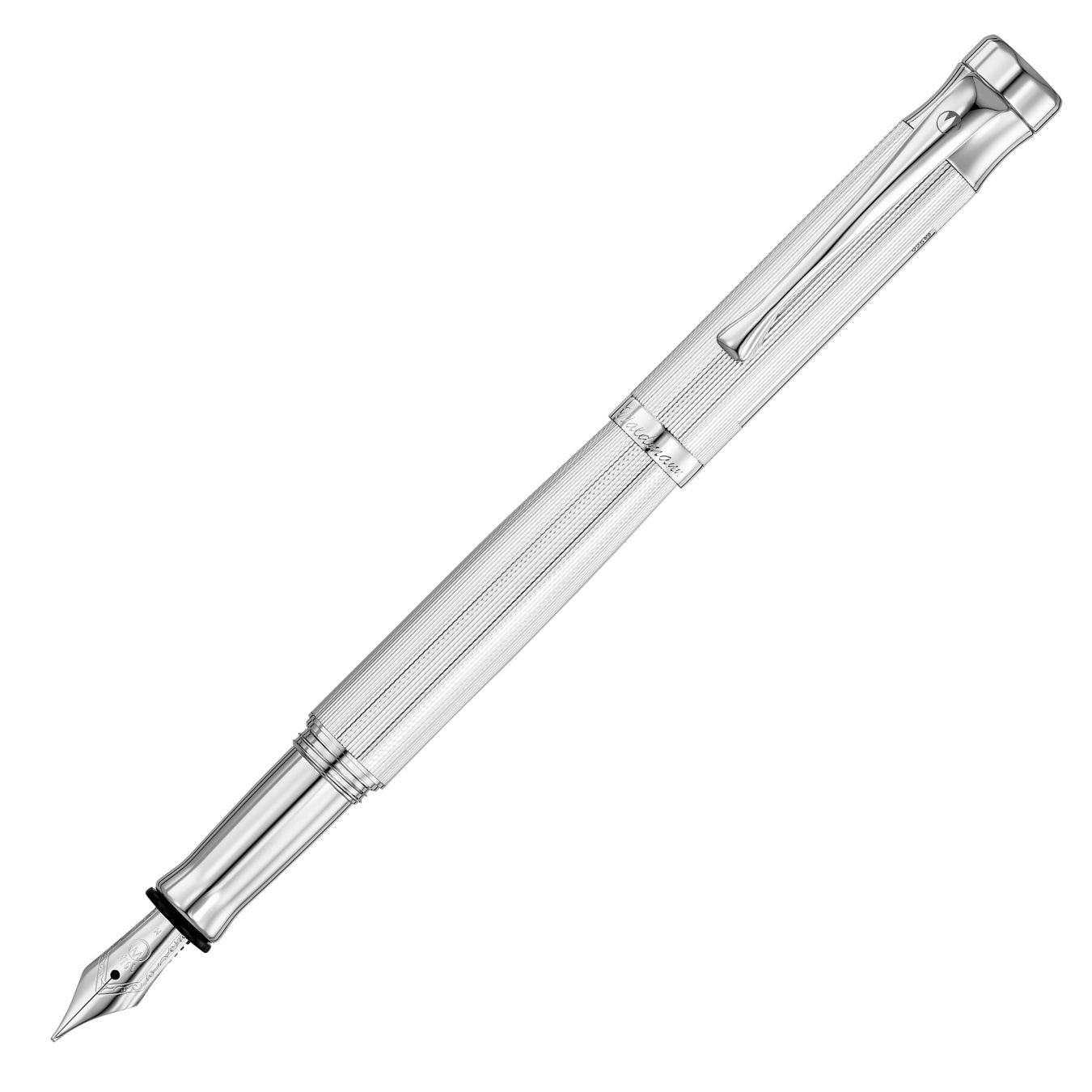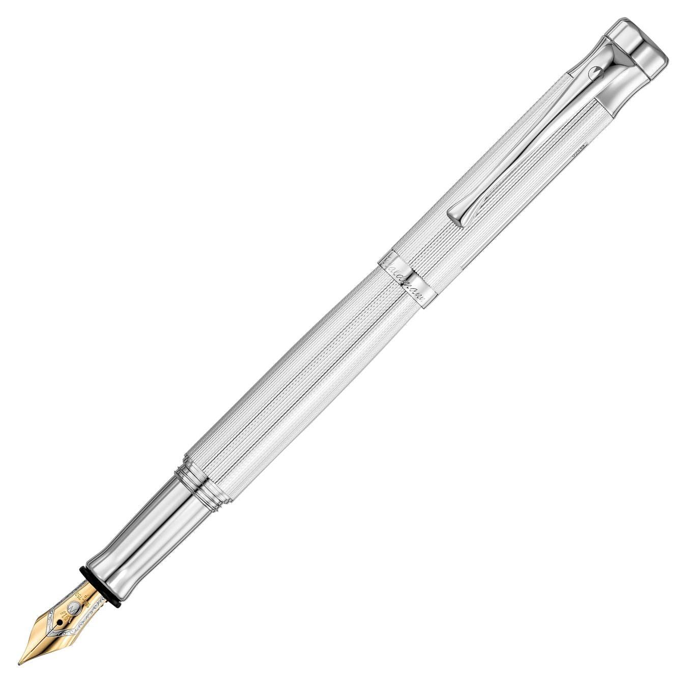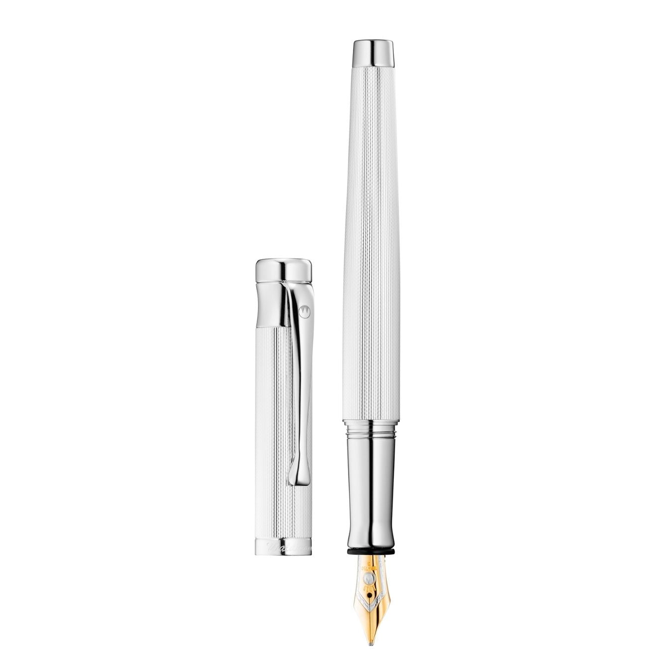 The Waldmann Tango Silver Grain Fountain Pen: a design classic and a continued success story. Expressive through its distinct, tapered silhouette, this elegant fountain pen features a meticulously crafted fine barley pattern on its barrel, achieved through the traditional Guilloché technique.