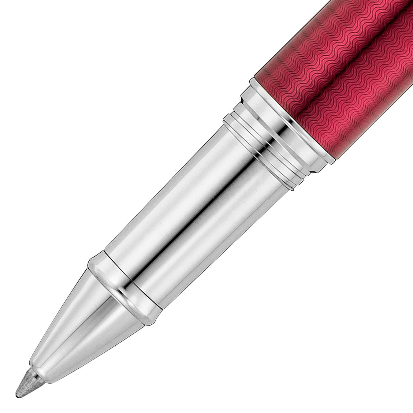 The Waldmann Grandeur Burgundy Rollerball Pen is a magnificent and sophisticated writing instrument, exuding dignity and grandeur. Its impressive and monumental appearance is beautifully contrasted by delicate and ornamental details in its craftsmanship. The cap and shaft are both meticulously adorned with the signature Silhouette pattern, achieved through the traditional Guilloché technique. A multi-layered transparent burgundy lacquer provides a rich and lustrous finish. It features a solid, spring-supported clip for secure carrying and platinum-plated metal component parts that enhance its elegance. The cap utilizes a secure screw system. Experience the smooth, effortless glide of this exceptional rollerball pen.
