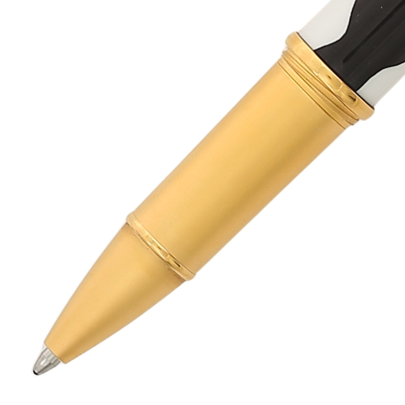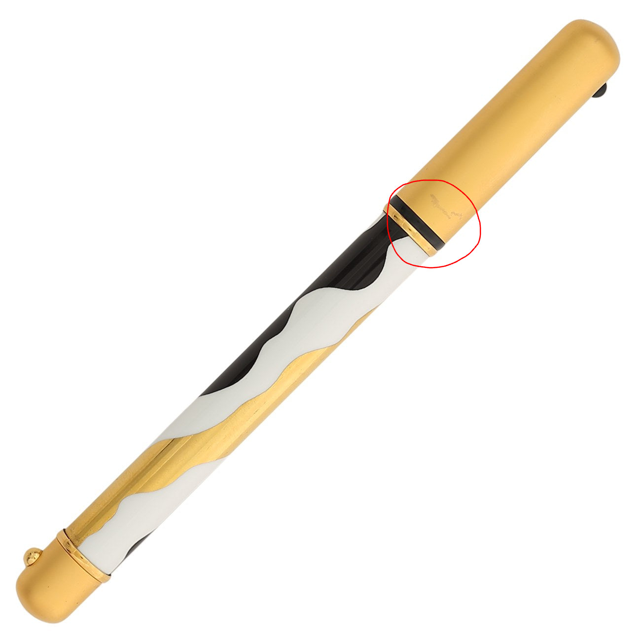 This Rollerball pen showcases the line's signature sleek, curved silhouette and features a stunning gold-plated barrel and cap. It offers a distinct profile that is both elegant and substantial, fitting perfectly into the history of modern writing design. Though previously loved, this pen retains its striking visual appeal and iconic status.