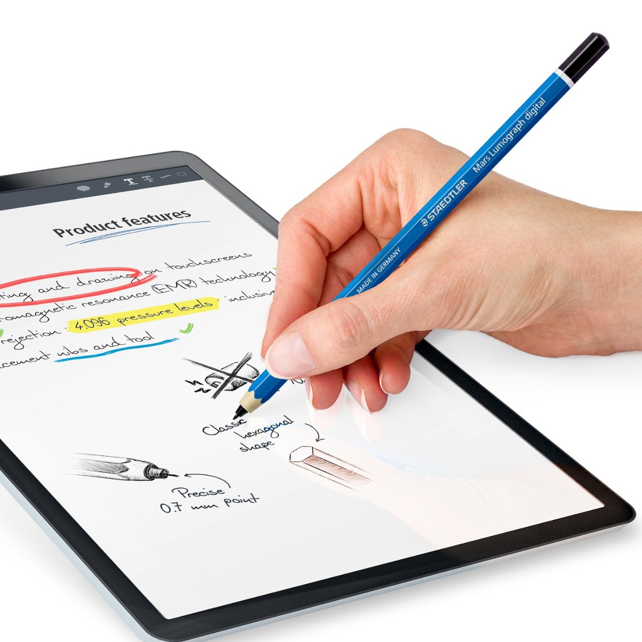 Experience the perfect fusion of tradition and technology with the Staedtler Mars Lumograph digital EMR Stylus. This stylus is designed to feel just like a classic pencil, providing a comfortable and ergonomic grip for extended use.