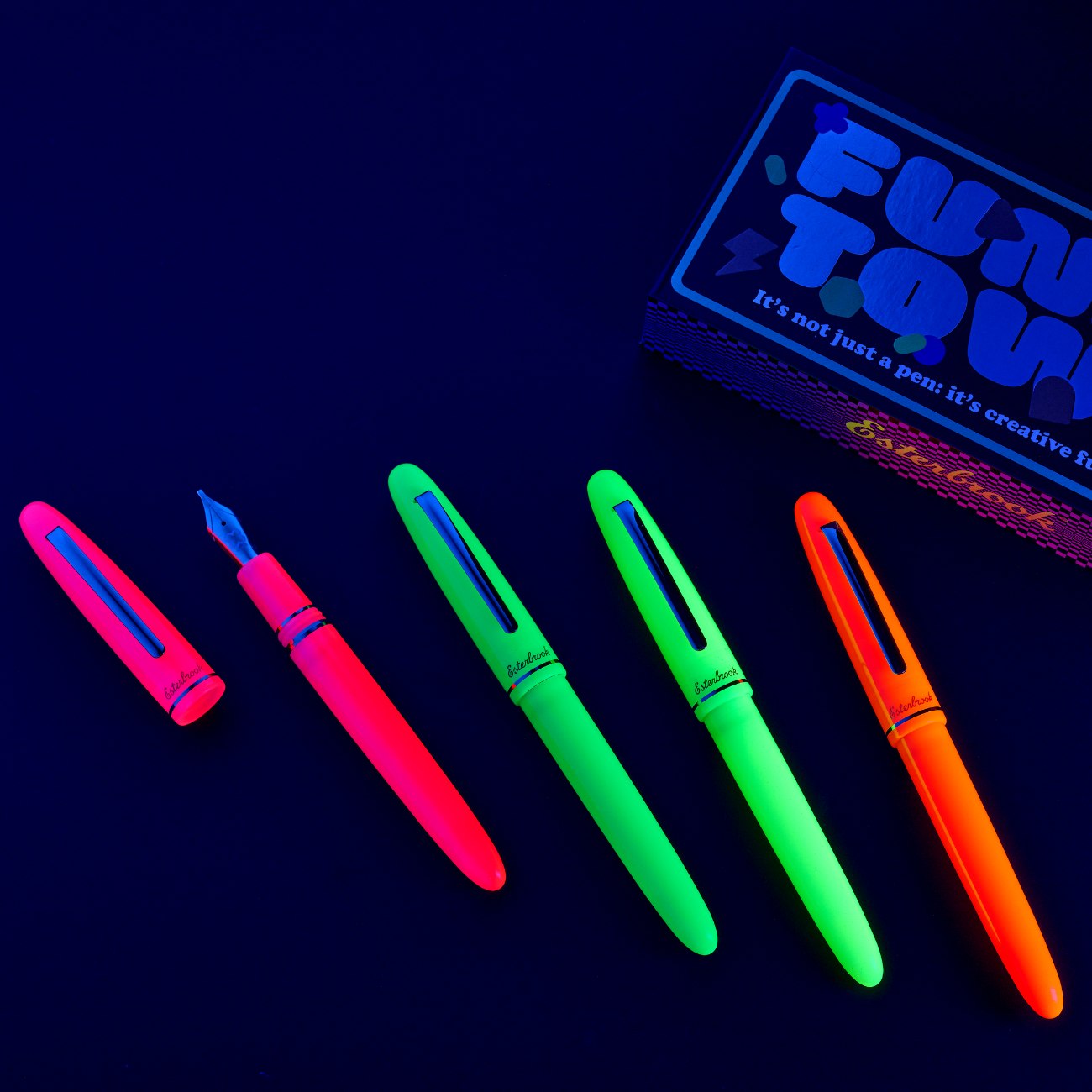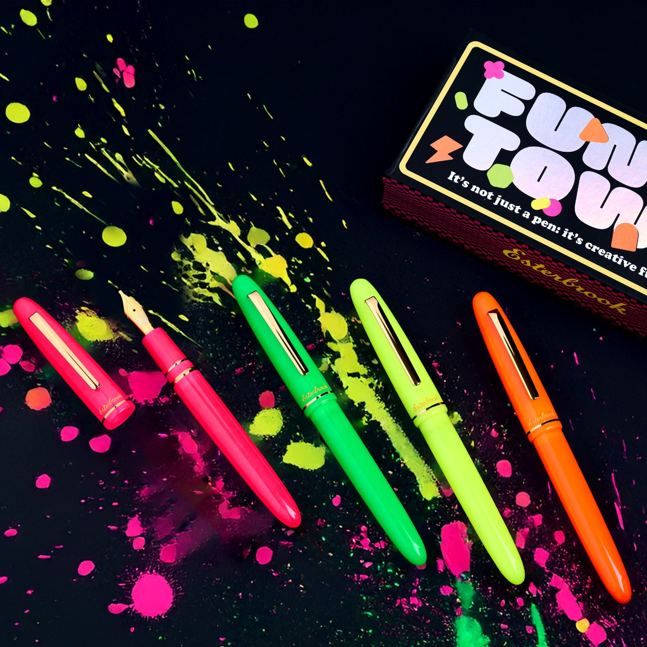 The Funky Town Estie is a bold new chapter in Esterbrook’s story, designed for writers who want their pen to be as vibrant as their imagination. Bursting with neon color, each pen in this limited release feels straight out of a disco dance floor, radiating energy and joy with every detail. Think glitter balls, flashing lights, and the carefree spirit of the ‘70s—this pen channels that same electric atmosphere. What makes it even more dazzling is its glow under black light, transforming writing sessions into an experience that’s as much about self-expression as it is about style.