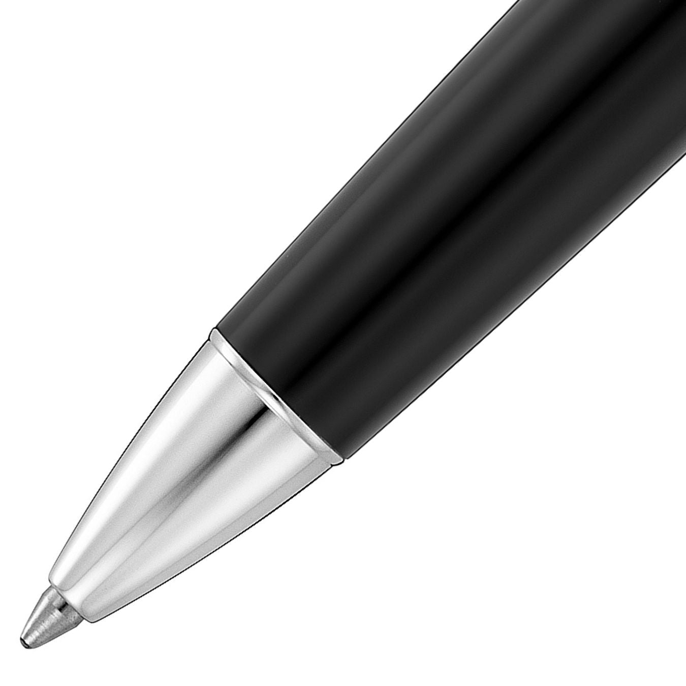 The Waldmann Précieux Black Lines Ballpoint Pen truly lives up to its name, impressing with its refined feel and exclusive finish. The cap features a sophisticated pinestripe pattern crafted using the traditional Guilloché technique. The shaft is finished with a multi-layered brilliant black lacquer, polished to a high shine. Complemented by metal component parts finished in elegant platinum plating, the pen also boasts a solid, spring-supported clip for secure carrying. The smooth twist-action mechanism ensures effortless use. Experience the exquisite quality of the Précieux.