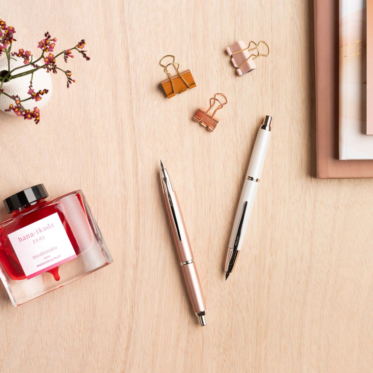 Auch der Capless Decimo ist mit rhodinierten Zierteilen und einer 18-Karat-Goldfeder ausgestattet, die ebenfalls rhodiniert ist und das Gesamtbild abrundet. Nachfüllen lässt sich diese leichtere Variante entweder mit passenden Tintenpatronen (IC-100 und IC-50) oder dank eines Konverters mit den faszinierenden PILOT iroshizuku-Tinten. Sowohl der Konverter als auch eine Tintenpatrone inklusive der passenden Schutzkappe sind im Lieferumfang enthalten.